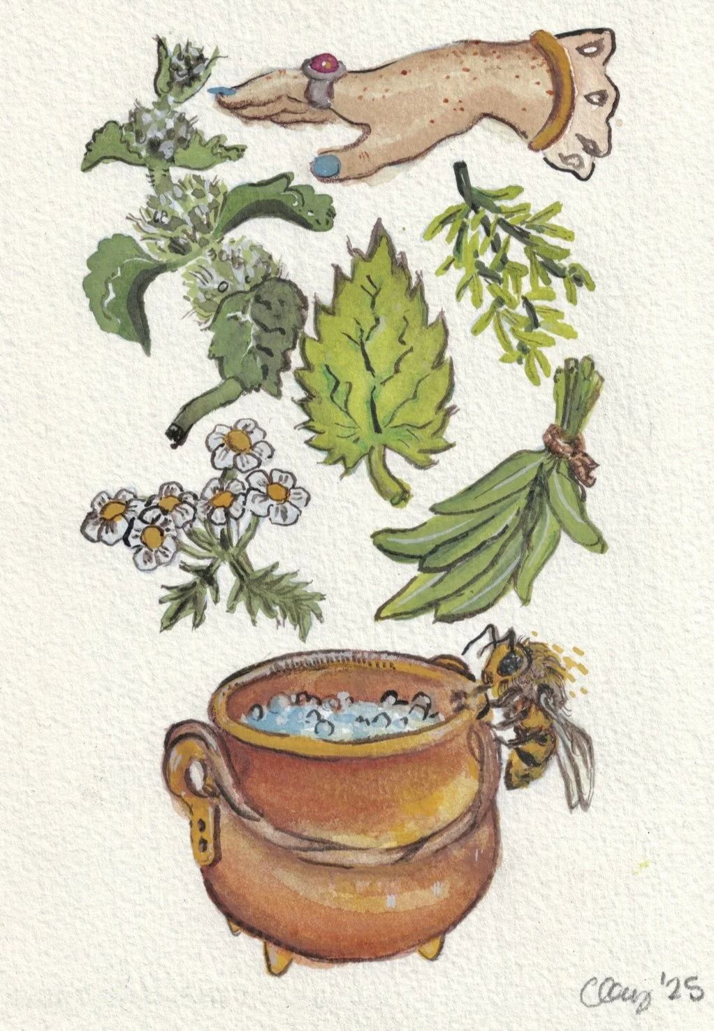 PROTECTION & HEALING SPELL, watercolor, 2025